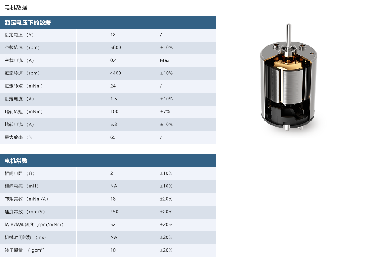 转矩常数:18±20% mNm/A